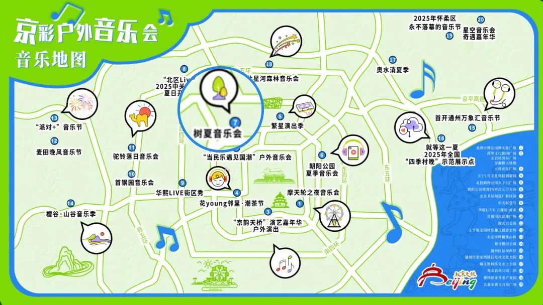 8月17日,北京市文化和旅游局聯合百度地圖發布“音樂地圖”,上線首批20個“京彩戶外音樂會”點位,豐富市民游客演藝體驗,增強城市音樂氛圍。北京衛星制造廠科技園“樹夏音樂會”成功入選。